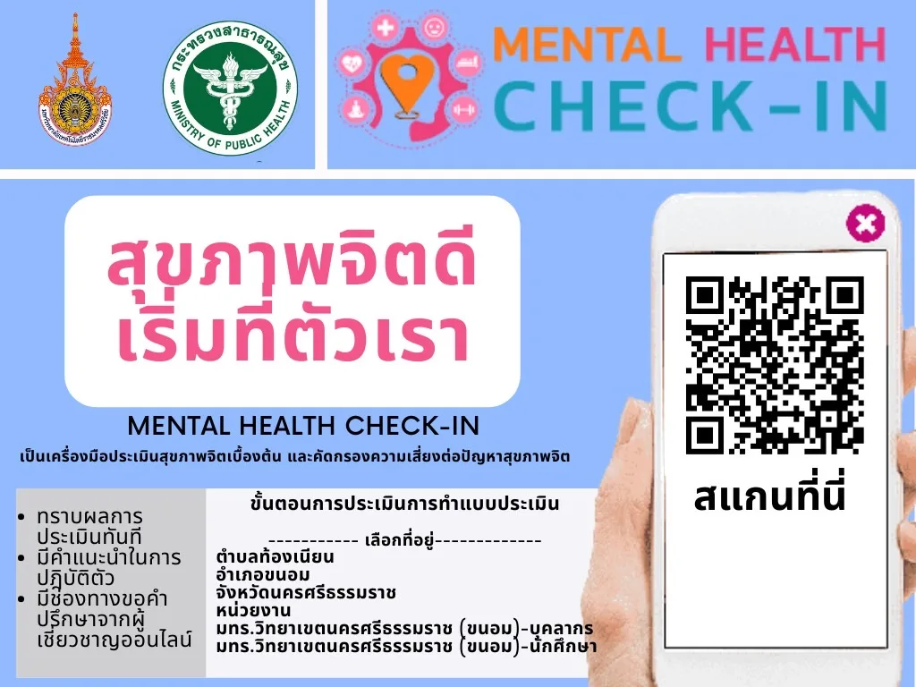 เชิญชวนบุคลากรและนักศึกษาคัดกรองสุขภาพจิตด้วยตนเอง ด้วยเครื่องมือ Mental Health Check-in